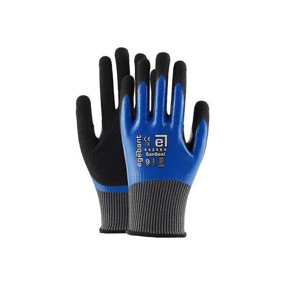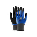 Double-layer fully coated nitrile work glove providing high resistance to cuts and abrasion in oil/liquid applications. Its special palm coating enhances grip, while the inter-finger support ensures long-term use.